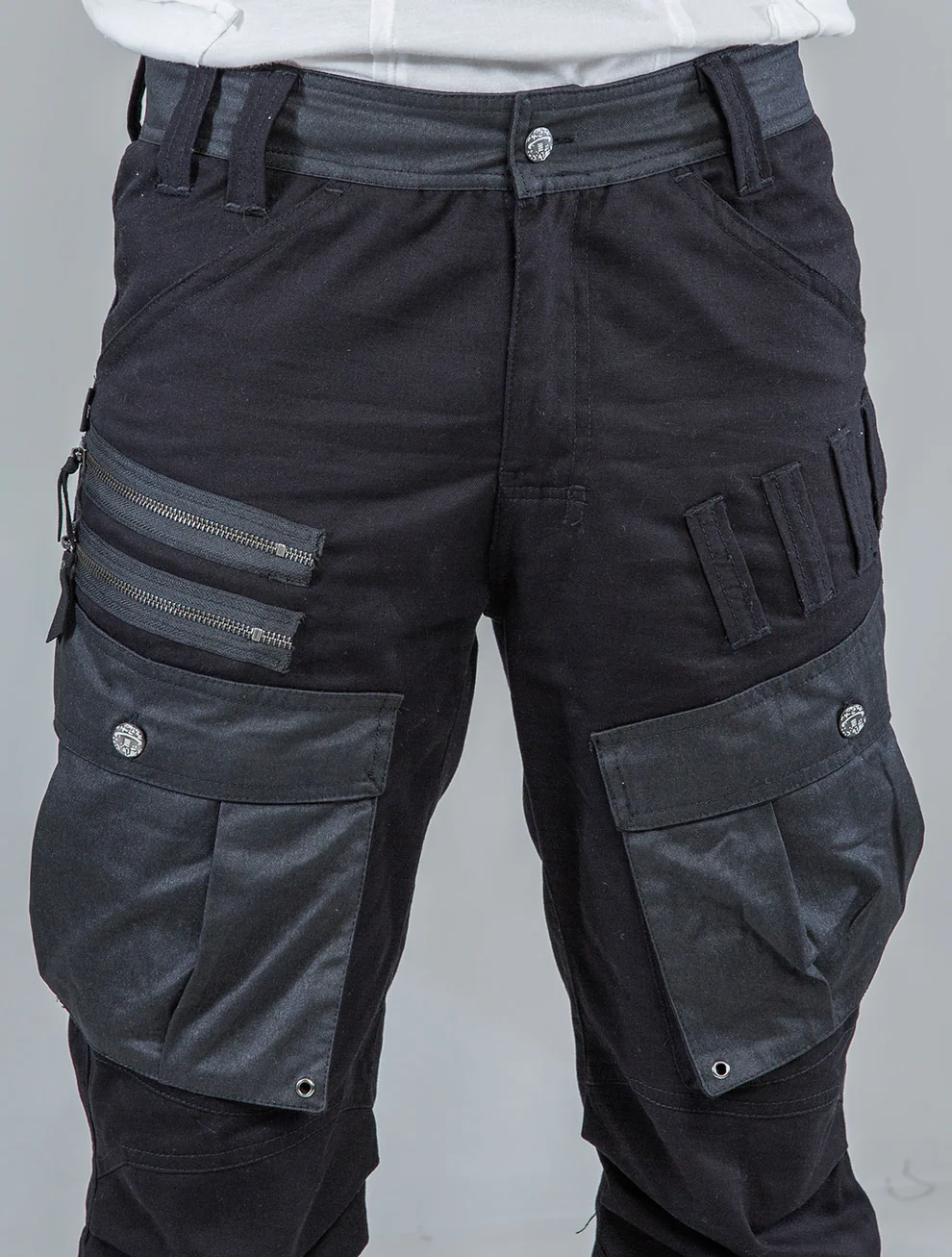 Inspired by legendary UK Punk band Sex Pistols — an emblem of disruption and noise. The Anarchy Cargo Pants are a punk rock essential built with grit, edge, and movement in its DNA. Built in a mixed patchwork of waxed and unwaxed twill, the fabric carries layered texture and attitude. Ergonomic knee panels sculpt the shape, while oversized pleated military pockets and a below-back pack pocket bring utilitarian punch. Double zippers on the right leg — one functional, one decorative — sharpen the edge. Multiple belt loops wrap around the waistband and legs, blurring the line between form and function. Finished with a No. 5 metal zipper and a back patch detailed with tarnished metal eyelets, it’s a modern punk evolution of the classic cargo silhouette.