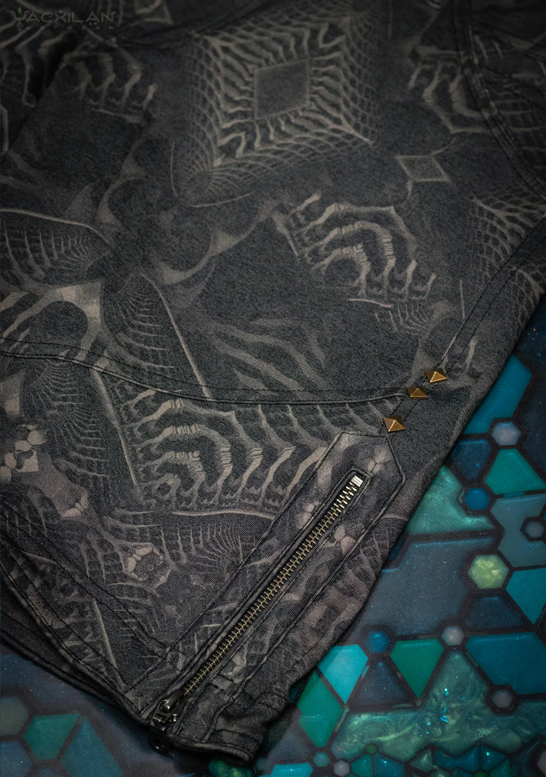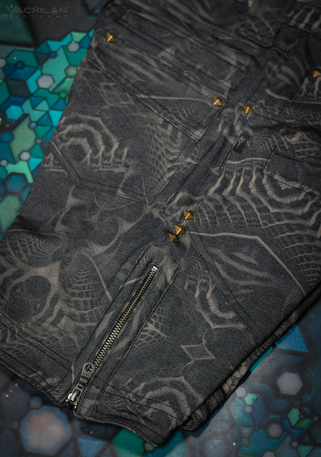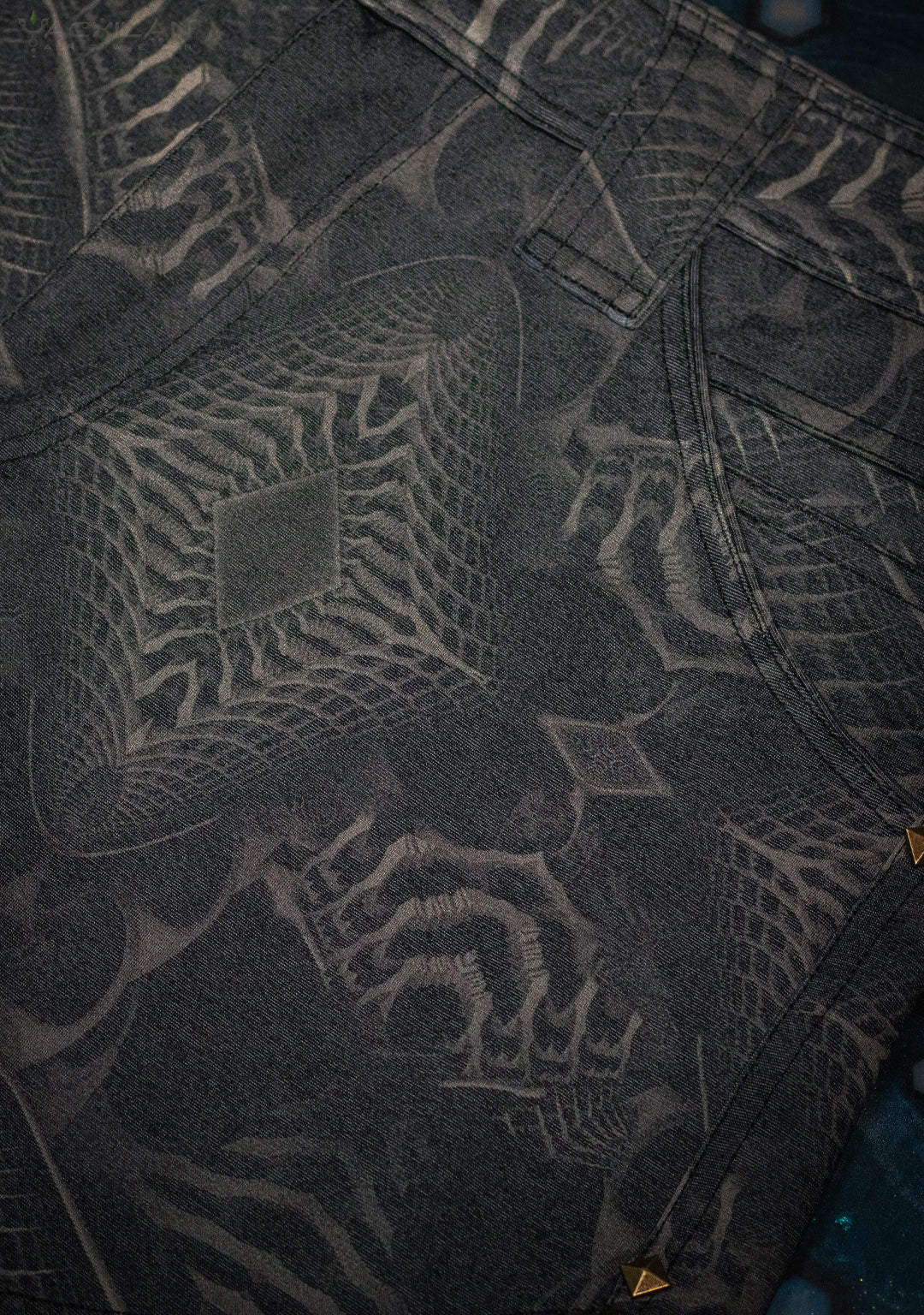 - Mix of Denim and Rubber Print ...Then Dyed in Black and Stonewashed gives you the perfect Pirate Looks with the confort of a second Skin (Composition : Mixed Denim).