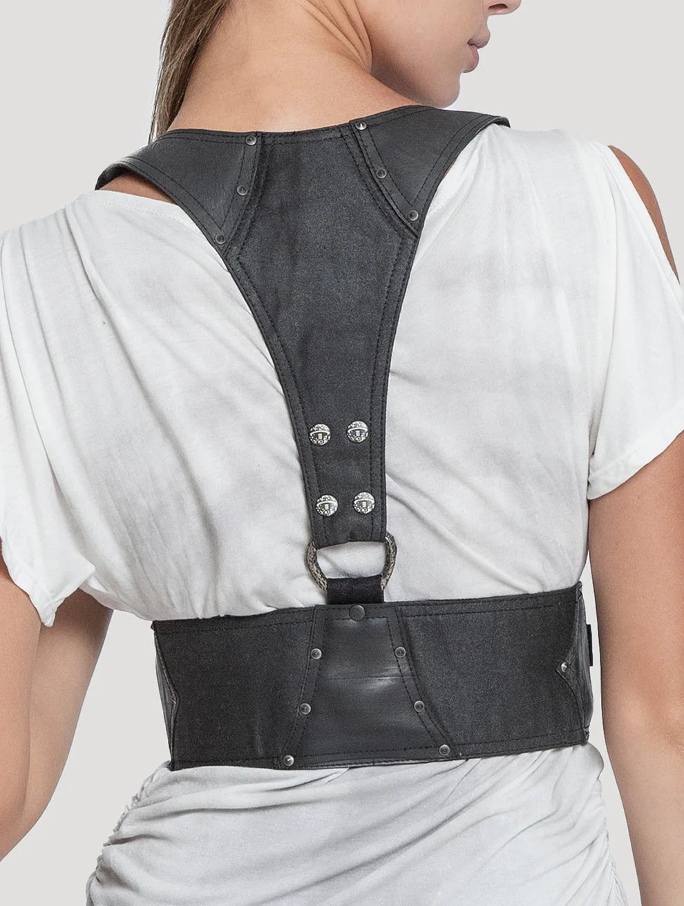 Drawing influences from fetish culture, this corset-style belt is vegan and is handmade with cotton and up-cycled bike tyres.
